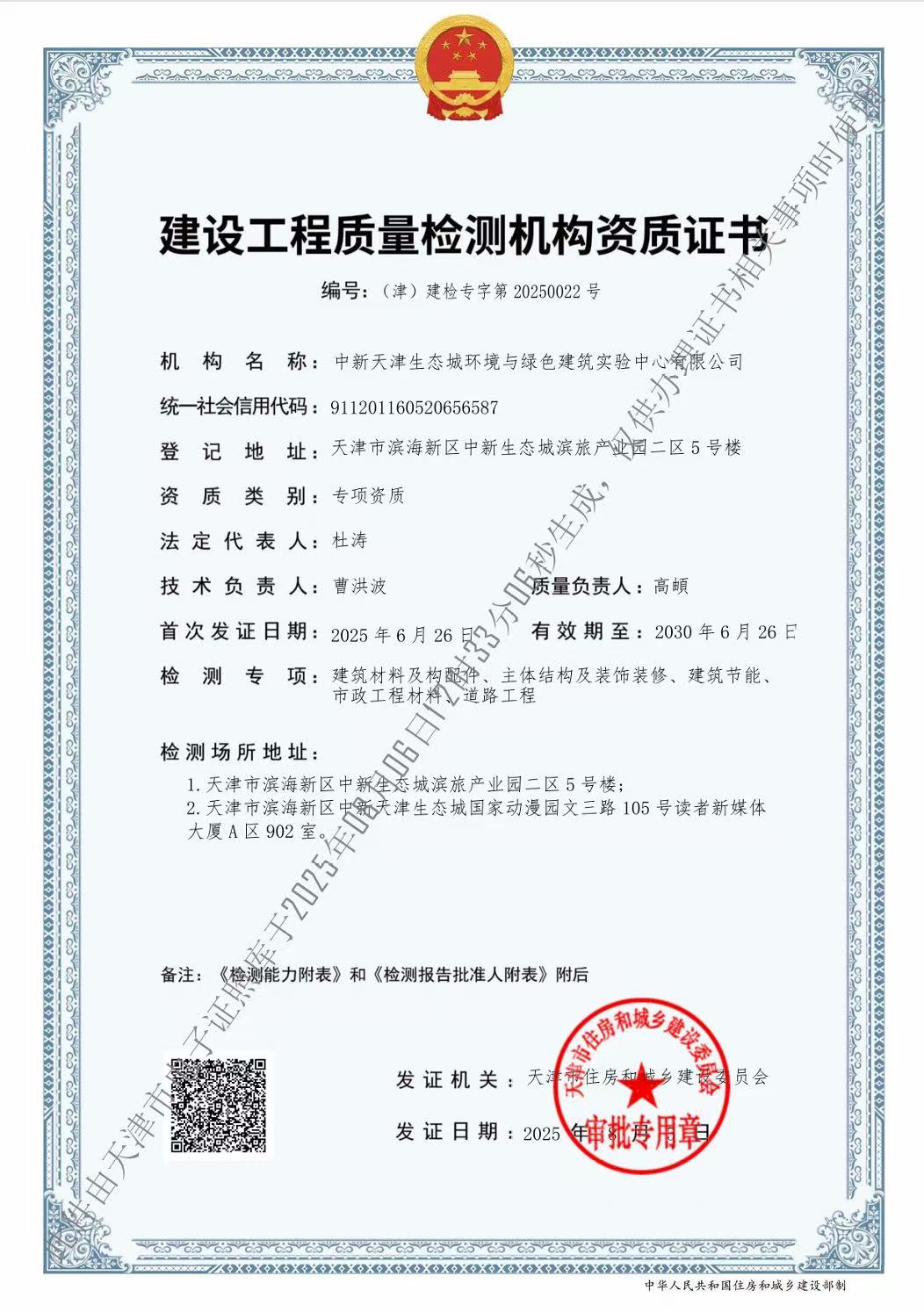 公司發(fā)展至今,技術能力不斷拓展和提升。現(xiàn)已具備檢驗檢測機構資質(簡稱CMA)、天津市建設工程質量檢測機構資質、中國合格評定國家認可委員會實驗室認可資質(簡稱CNAS)等資質。同時,公司已被認定為高新技術企業(yè)、天津市專精特新中小企業(yè)、濱海新區(qū)首家近零能耗建筑第三方測評機構。公司主要從事建筑材料及構配件、主體結構及裝飾裝修、建筑節(jié)能、道路工程等檢驗檢測服務,以及綠色建筑節(jié)能評估、近零能耗、房屋質量安全鑒定等咨詢服務業(yè)務。公司在冊員工為60人,其中高級職稱30名,中級職稱20名,初級職稱10名。